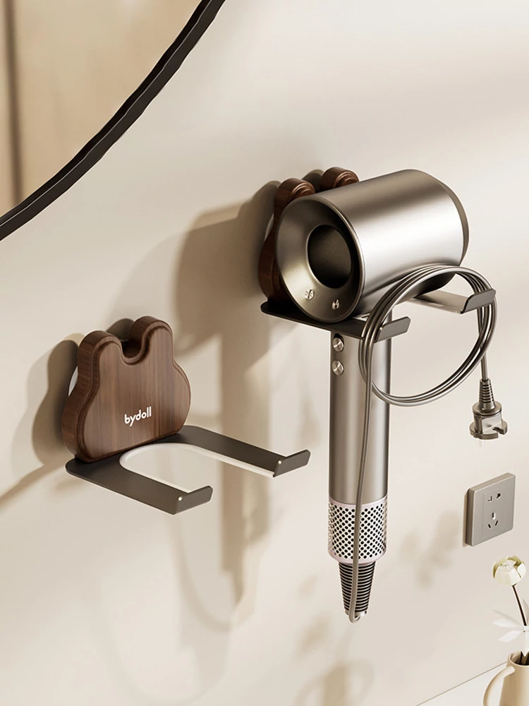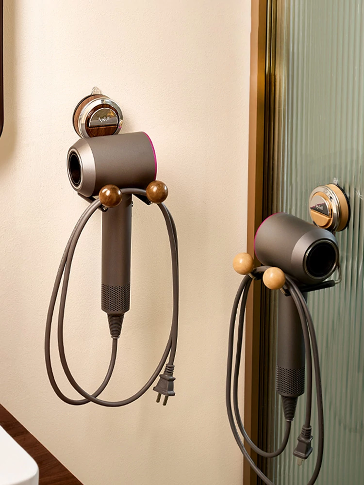 吸盤式ドライヤー収納ラック - バスルームでの便利なウッド製ホルダー、穴あけ不要で簡単取り付け!おしゃれで機能的なデザインで、洗練されたバスルームを演出します。