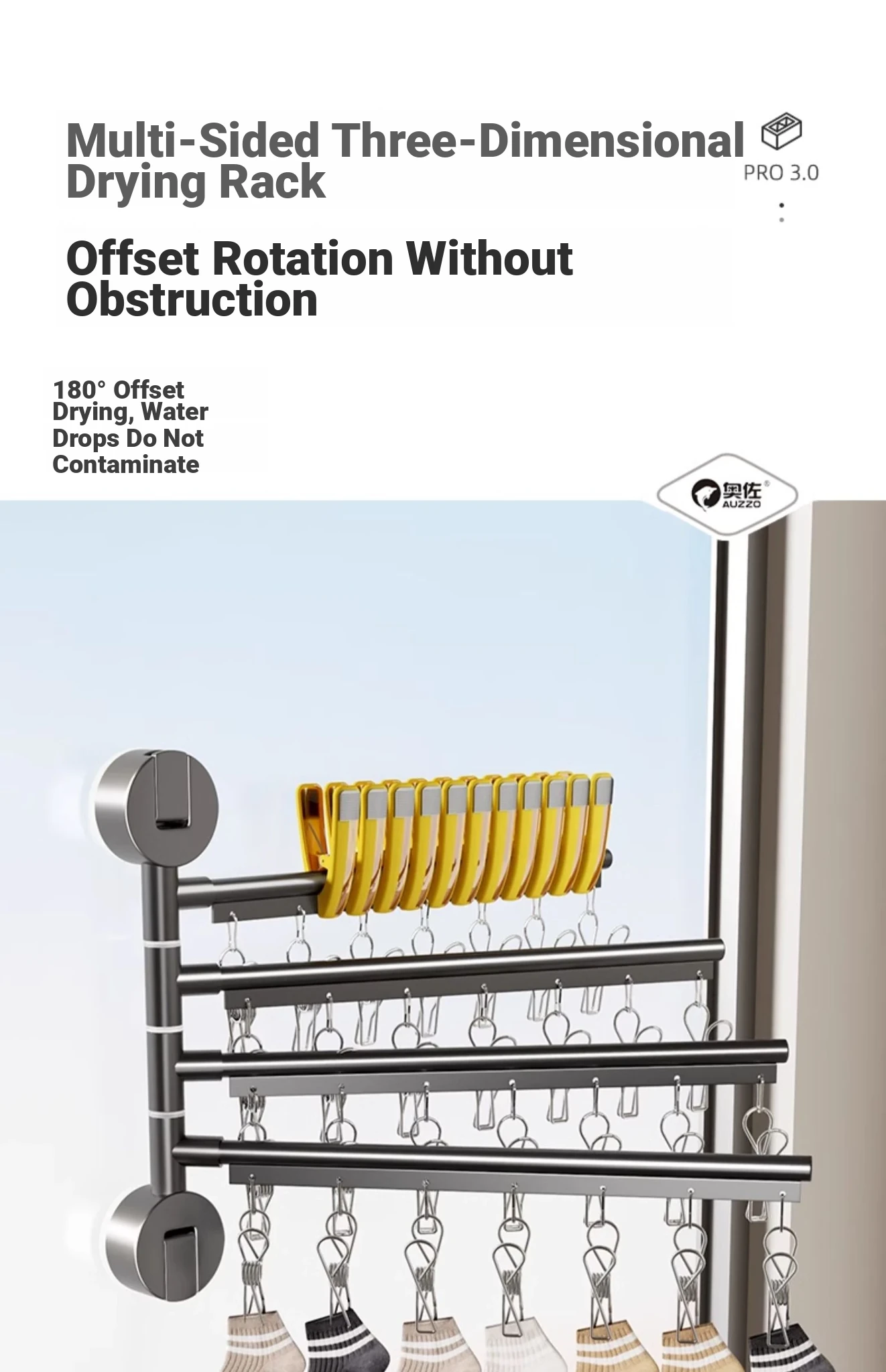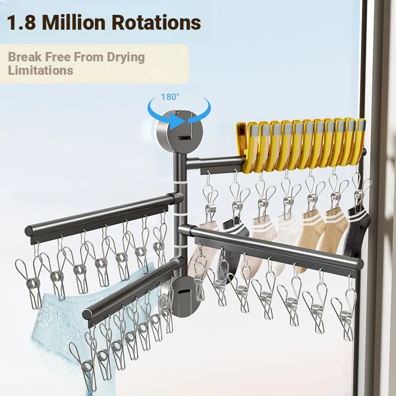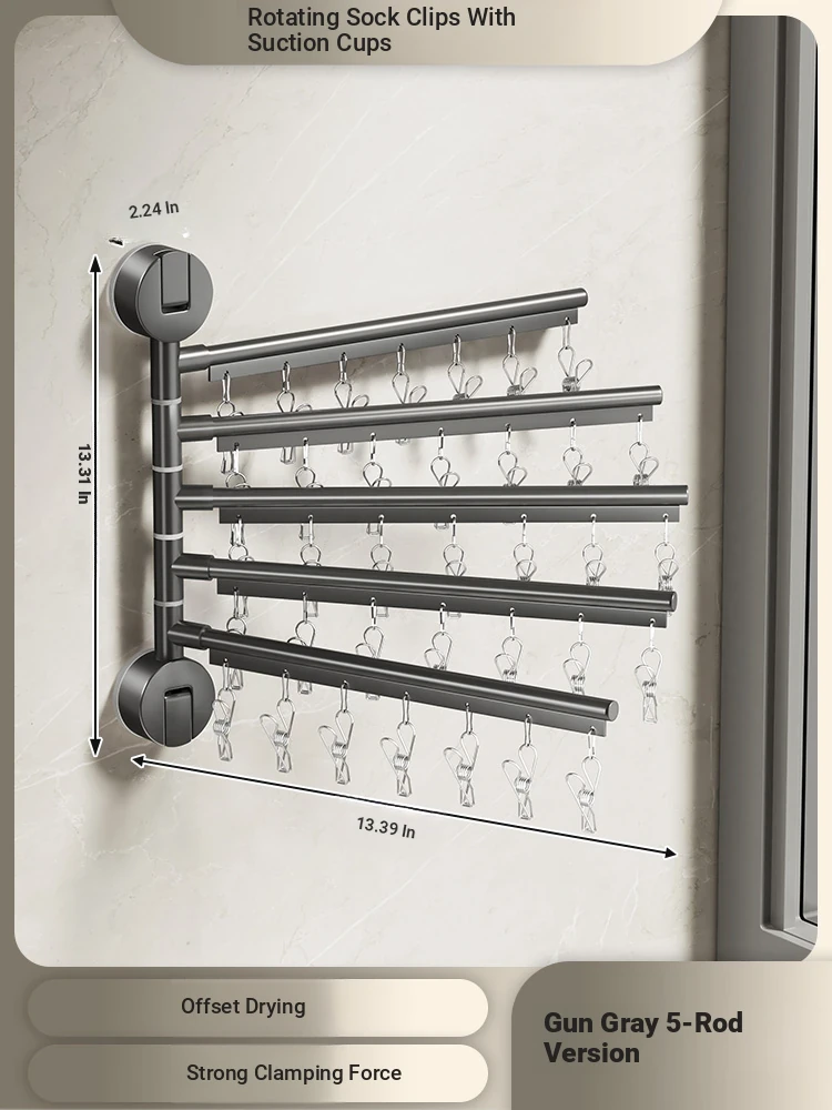 Suction Cup Rotating Drying Rack-5 Poles [35 Clips]