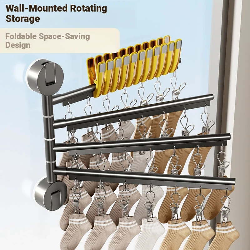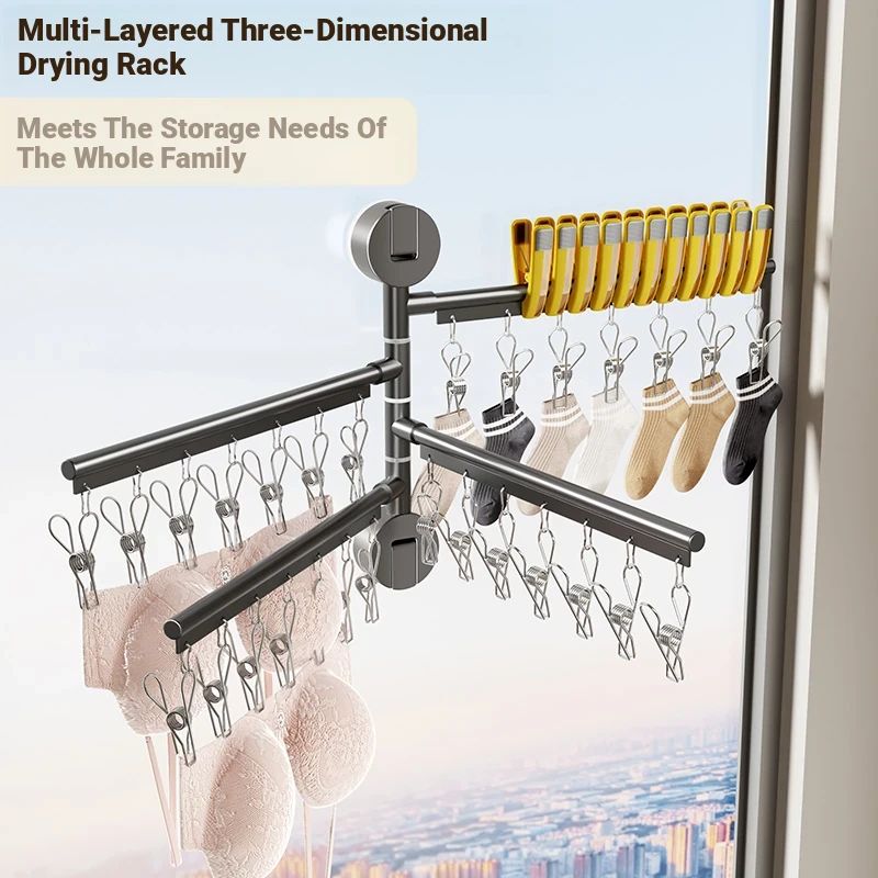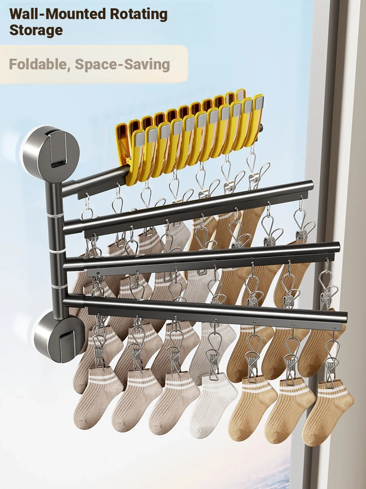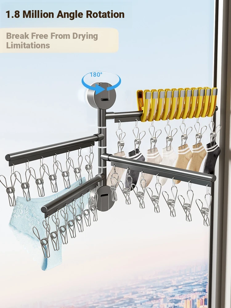Foldable Sock Drying Rack with Suction Cups - Multi-Clip Home Clothes Hanger for Underwear and Socks, Windproof Balcony Solution for Effortless Drying!