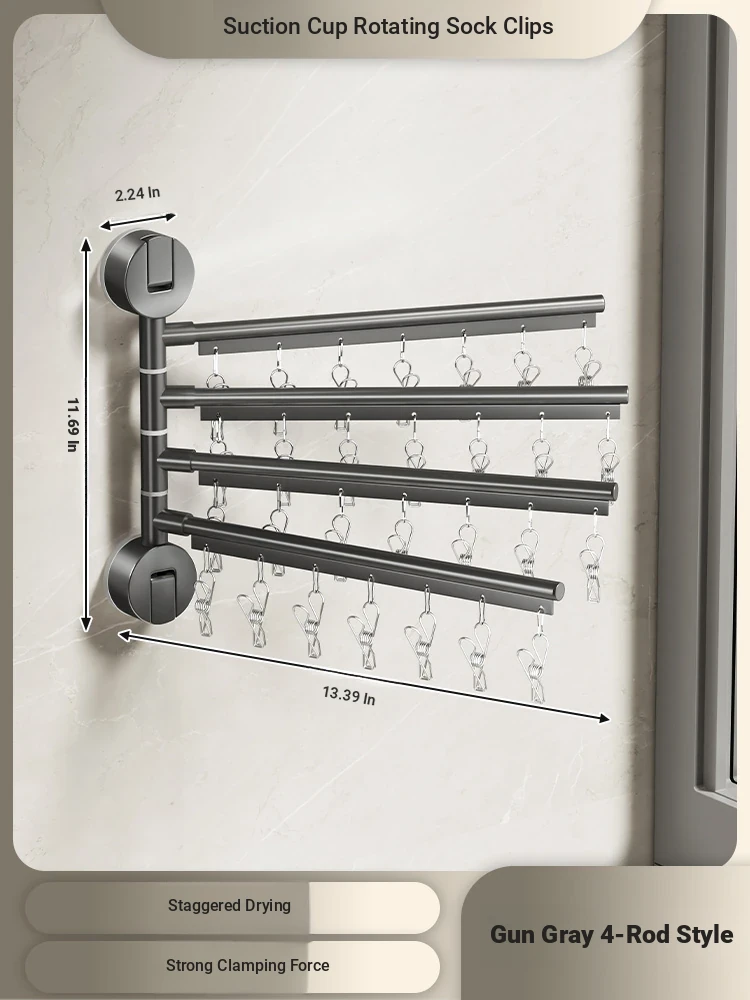 Suction Cup Rotating Drying Rack-4 Poles [28 Clips]