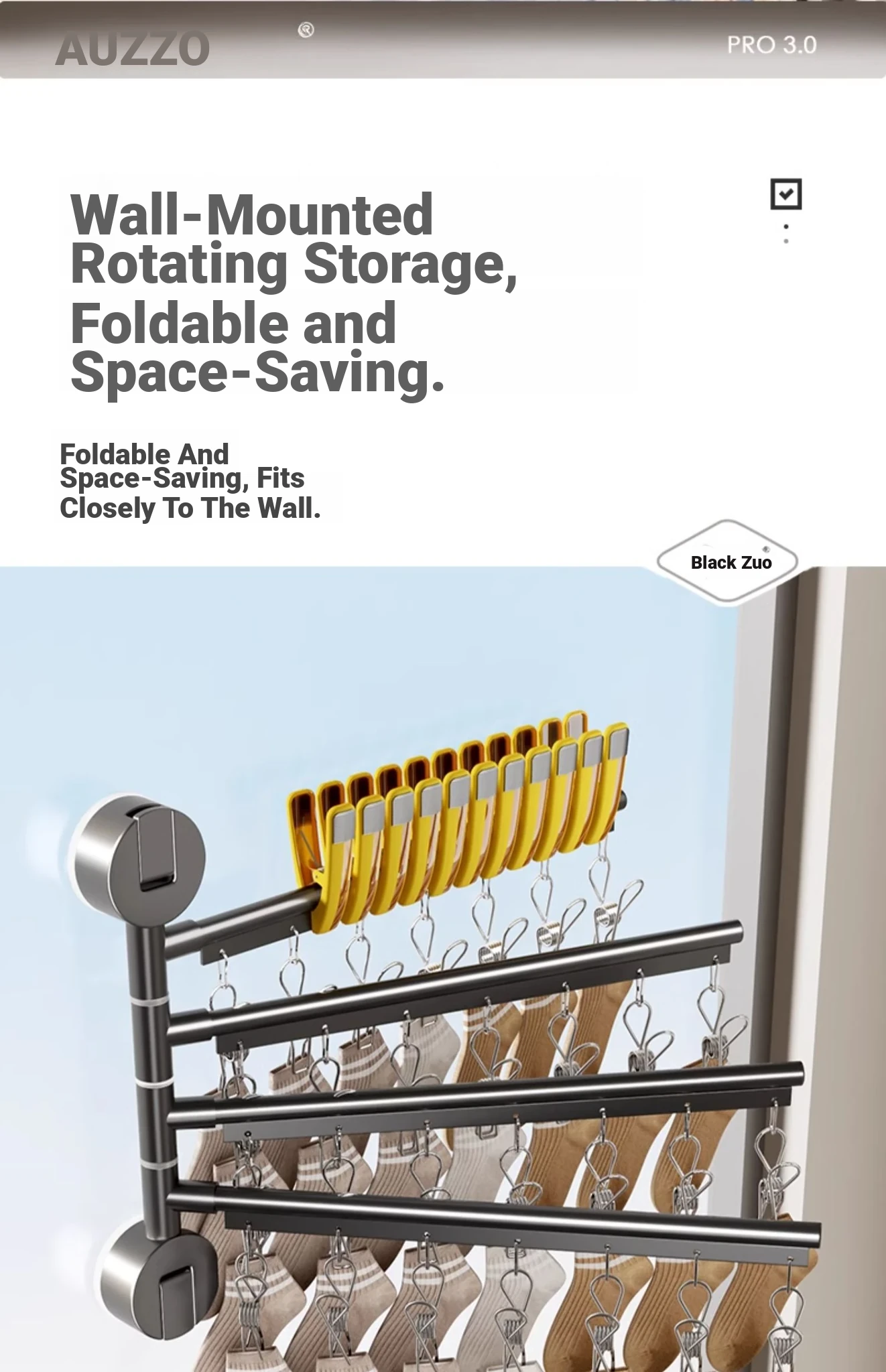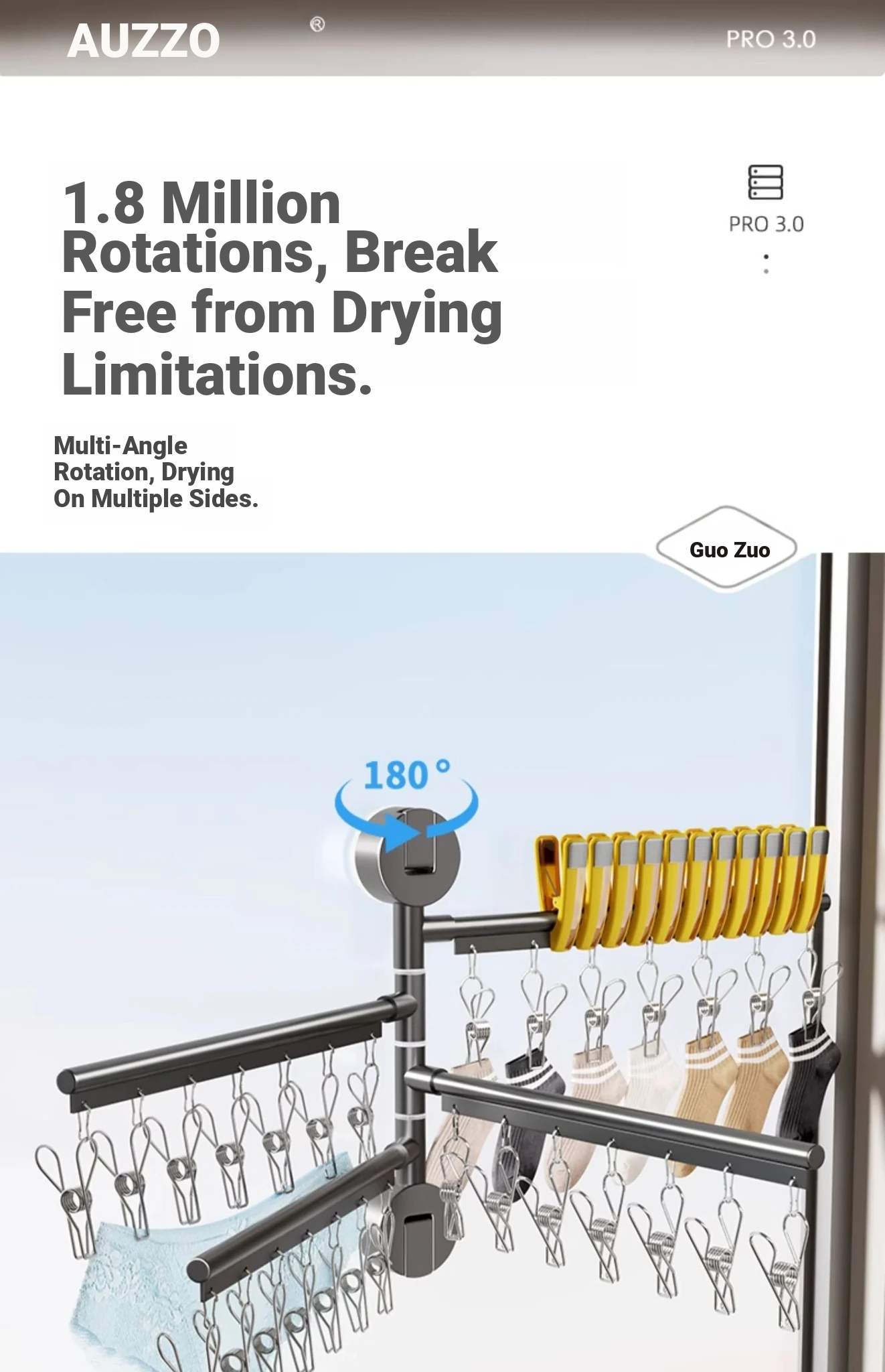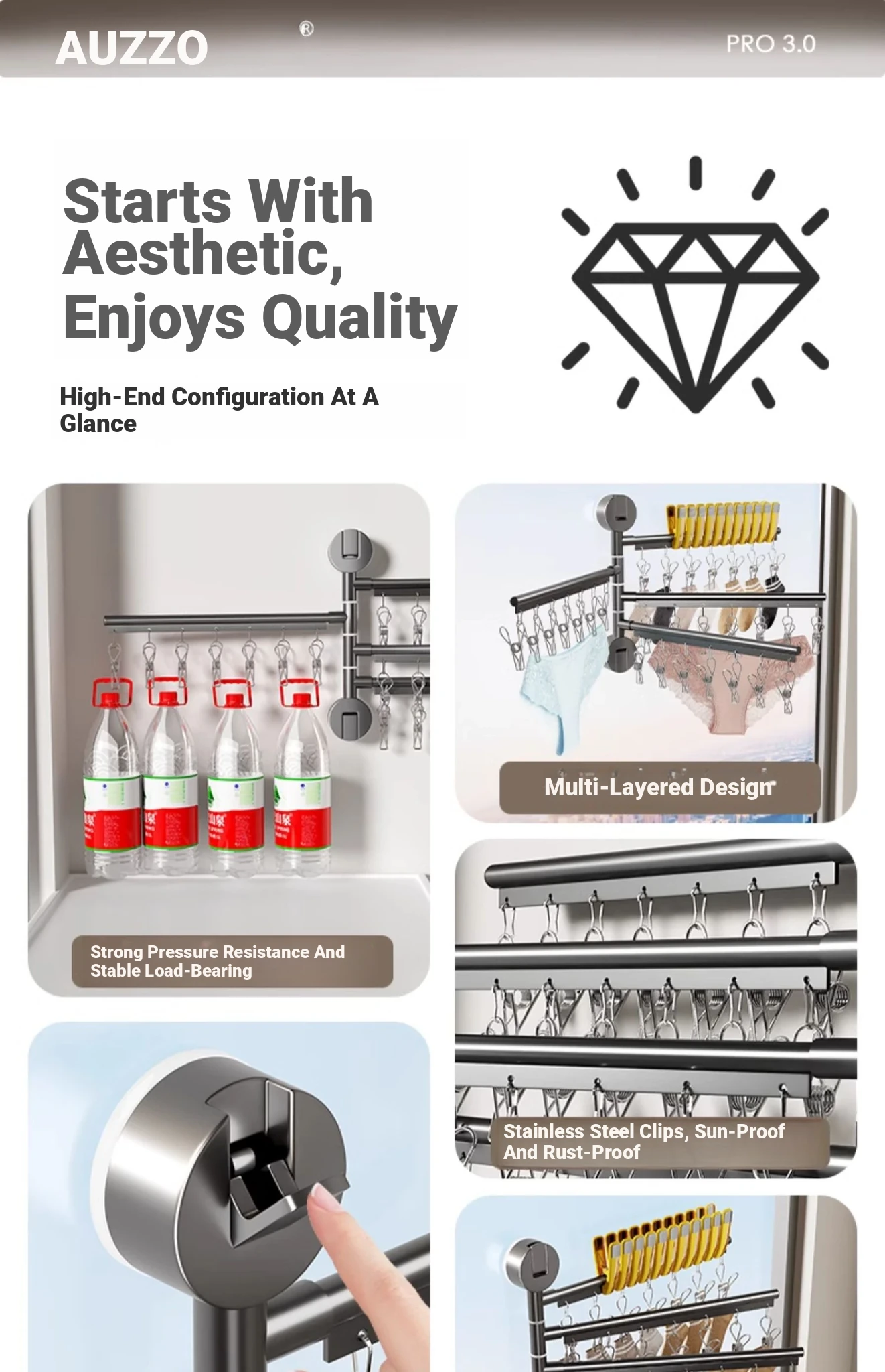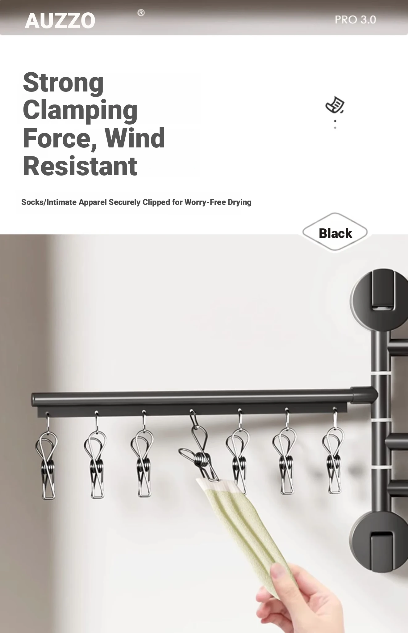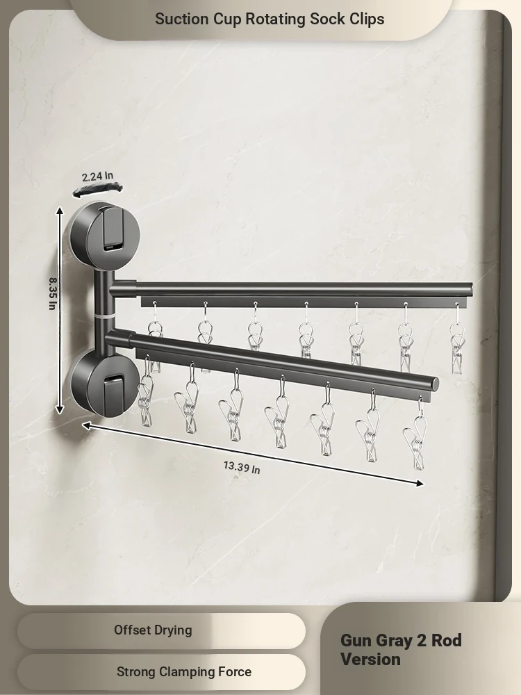Suction Cup Rotating Drying Rack-2 Poles [14 Clips]