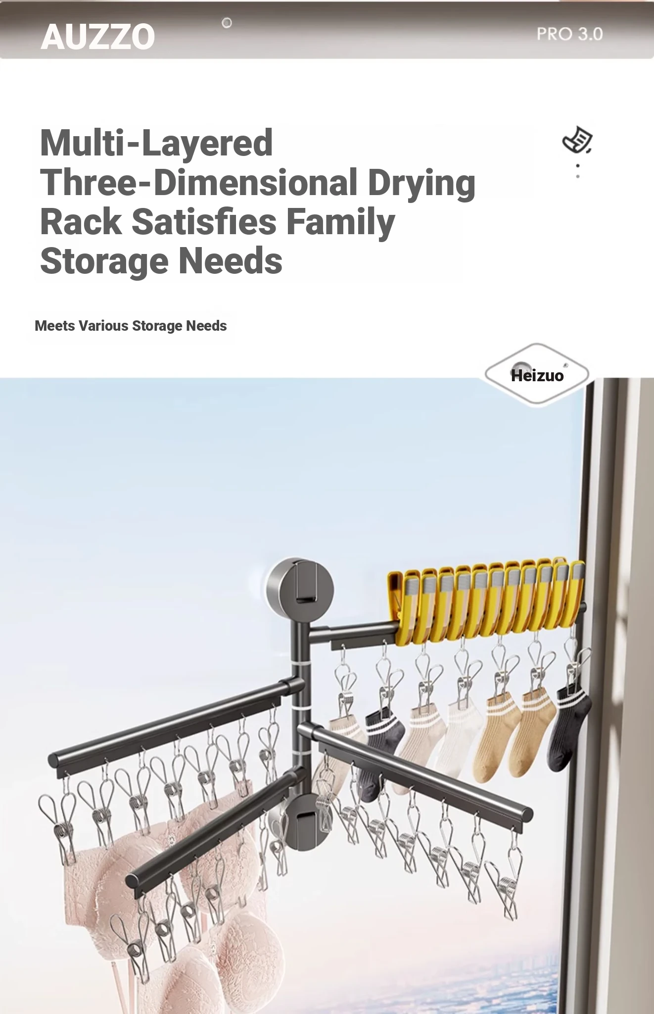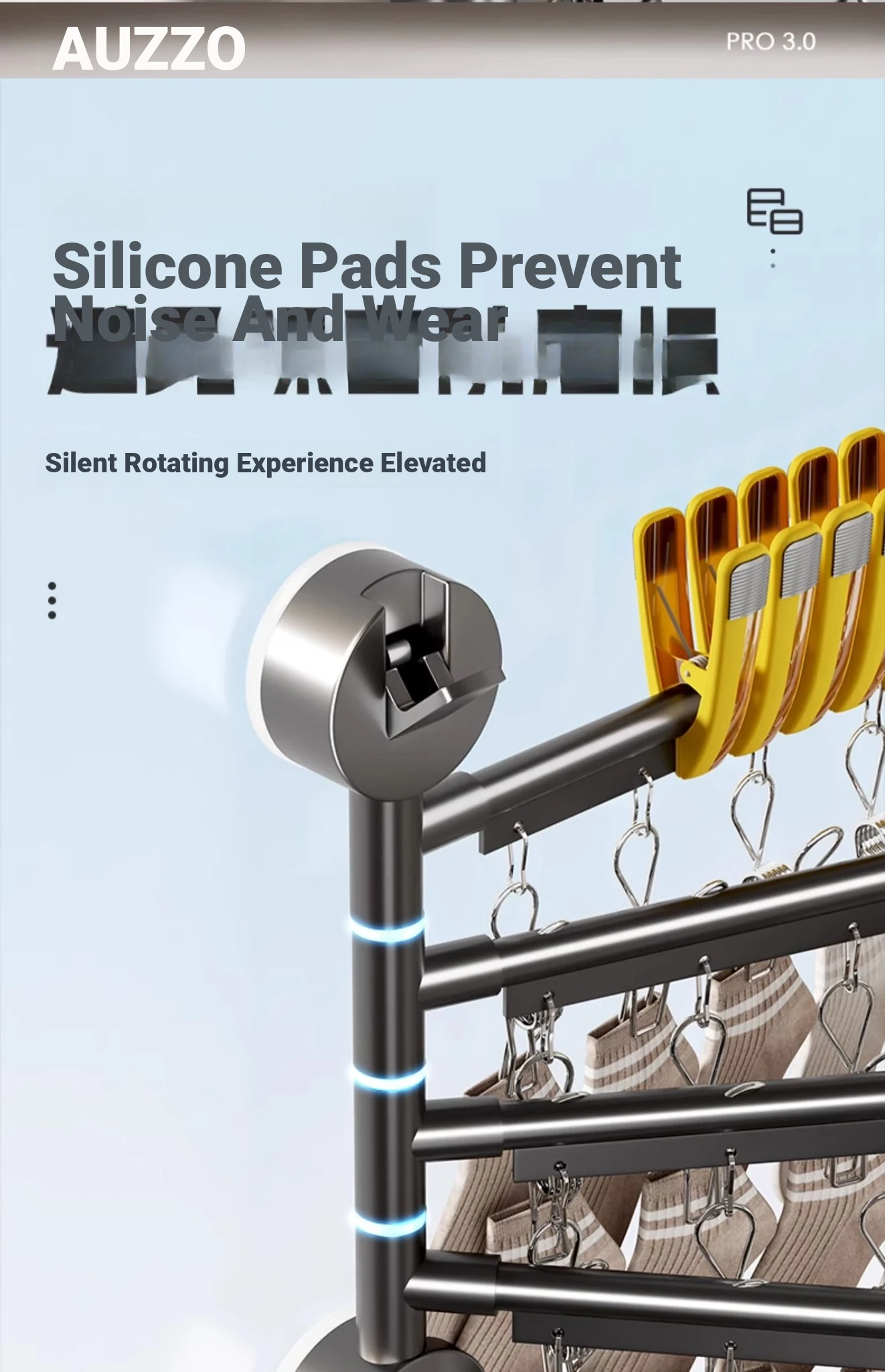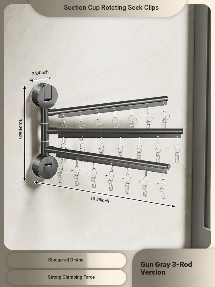 Suction Cup Rotating Drying Rack-3 Poles [21 Clips]